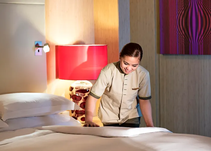 Situé à 1,6 km de Centre commercial Mall of the Emirates à Dubaï, Novotel Dubai Al Barsha propose un centre de bien être et une piscine extérieure ouverte toute l'année. Situé à moins de 350 mètres de la station de métro Sharaf DG, l'hôtel se trouve à 10 minutes de route de Wild Wadi Water Park.